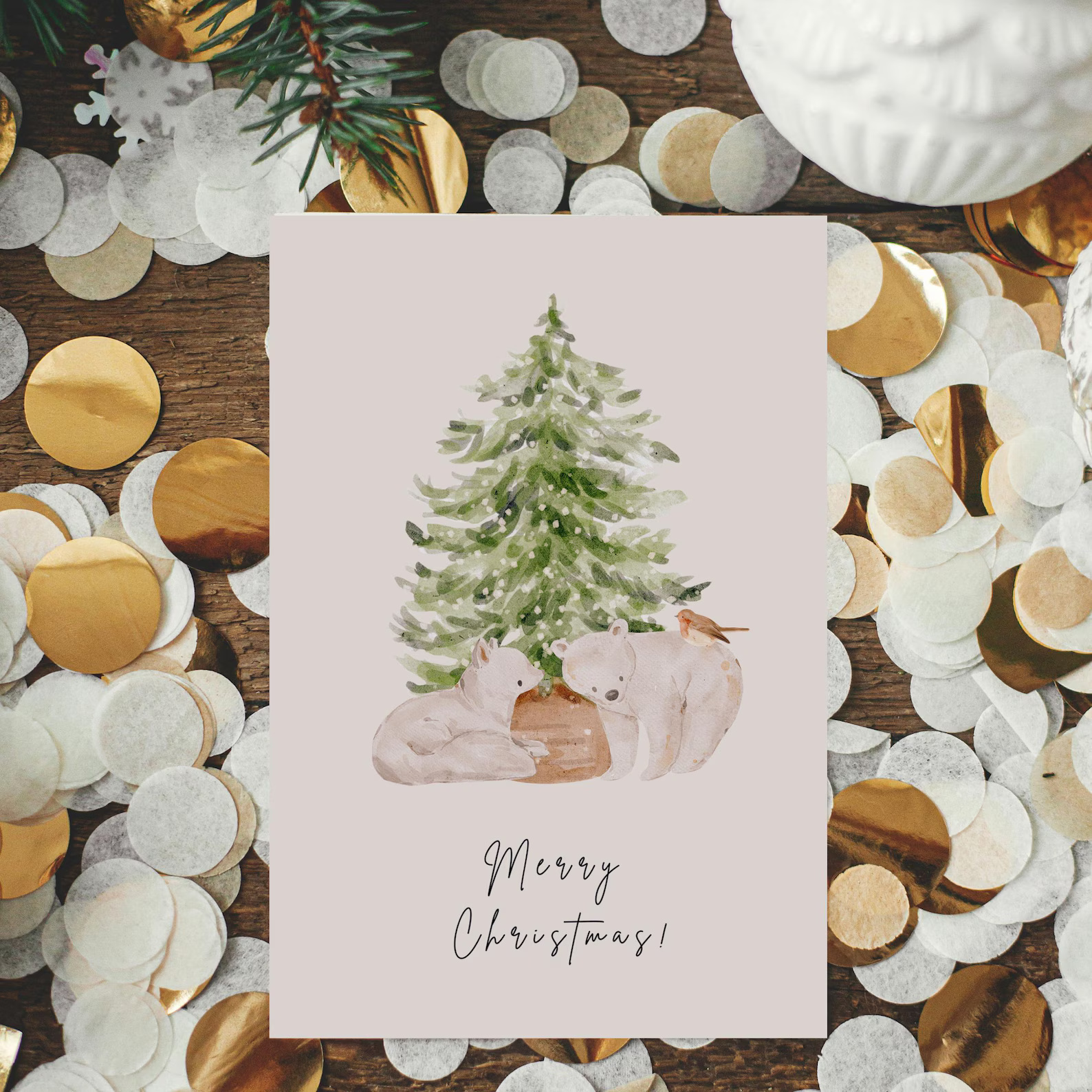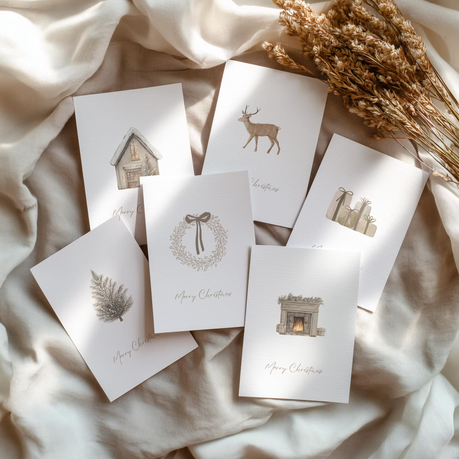 Elegant cards with modern fonts and minimal holiday accents.