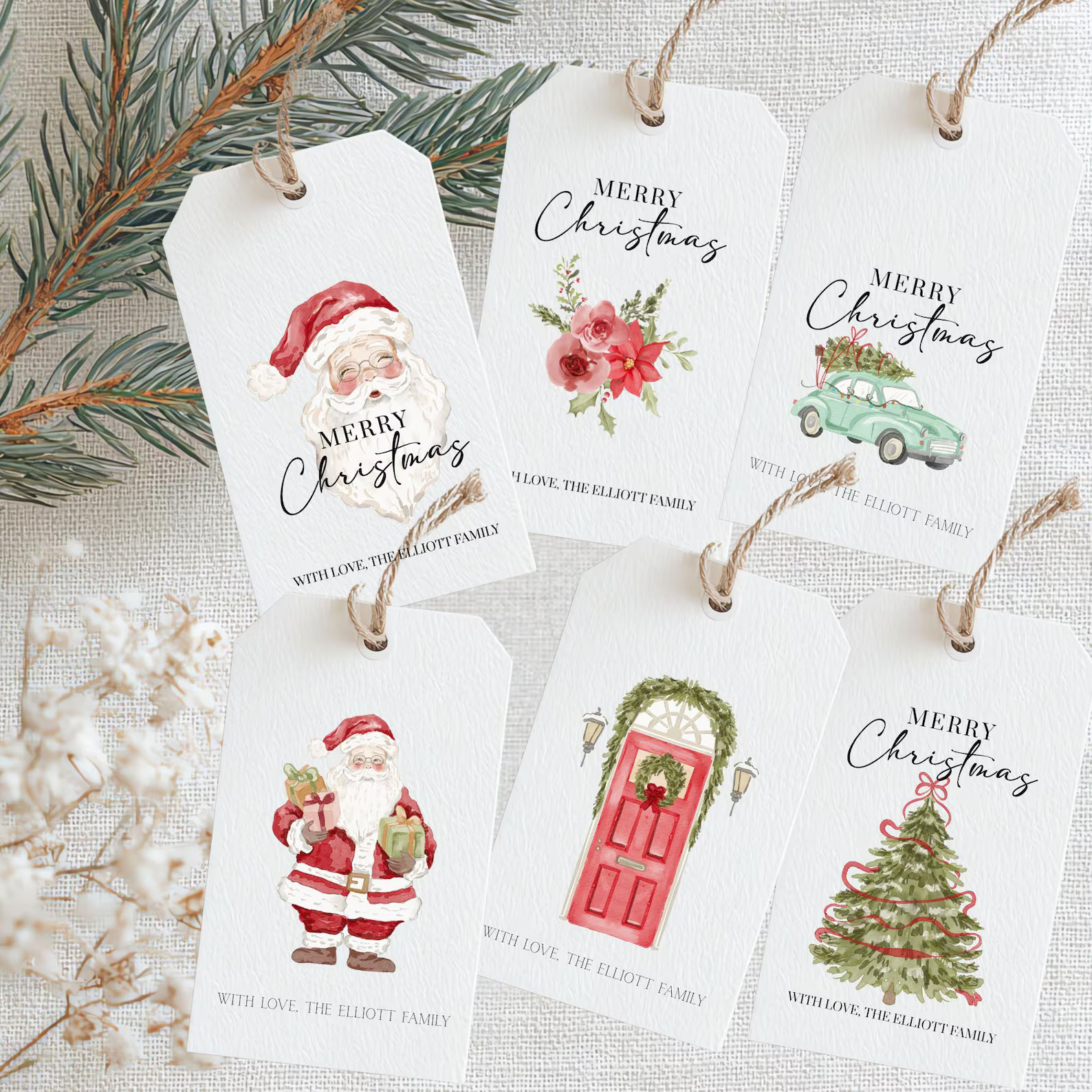 Clean tag designs in neutral tones, easy to customize.